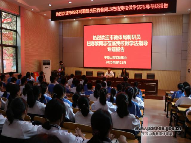 [图]欲揽九天月 先铸凌云志——市教体局调研员钮春黎莅临市实验高中做学法指导