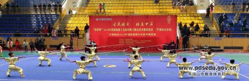 | 繁体 | 网站已支持ipv62月16日,“体彩杯”2019年河南省第十五届中原大舞台武术表演活动(平顶山分会场)暨平顶山市2019年迎新春青少年武术精英赛在市体育村隆重举办。本次活动是由河南省体育局主办,河南省武术运动管理中心、平顶山市教育体育局承办,平顶山市体育村、平顶山市武术协会协办。市政协副主席李建华,市教育体育局党组成员、副局长郭志勇,市教育体育局副调研员刘子东等领导出席本次活动。