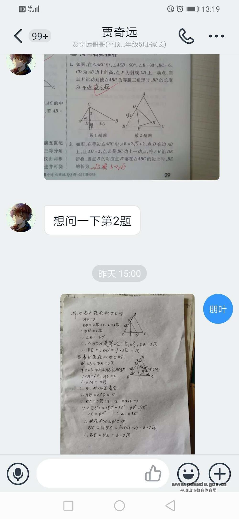 由于七、八年级数学有省名校同步课堂,不需要线上直播授课。但鉴于数学学科的特殊性,除了省名校课堂,必须有一套适合我们自己的行之有效的方法,来保证真正做到“停课不停学”。通过讨论,七八年级形成了:优化作业---及时批改反馈----线上联播辅导为主的“三段法”。