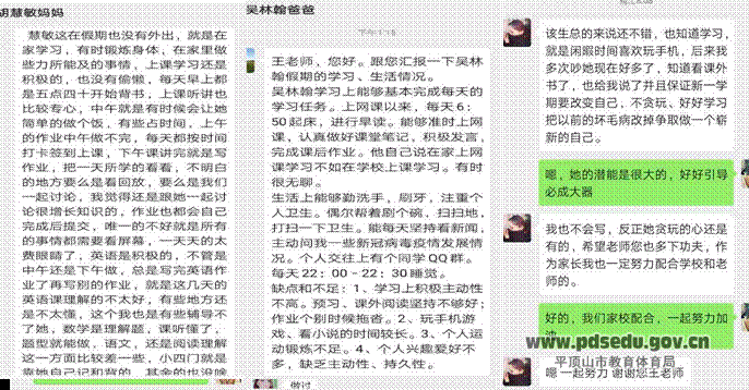 良好的家校合作是做好学校工作的一个重要保障,家访工作是加强学校与家庭联系的重要方式。2020年寒假,原本短暂的假期,因为一场突如其来的疫情而变的“漫长”。特殊时期,特别关爱,市四十三中老师们除了忙着在家上网课、批改作业、在线考试等,还积极与家长、学生们进行线上交流沟通,引导家长开展有意义的居家教育活动,合力保障学生健康成长。