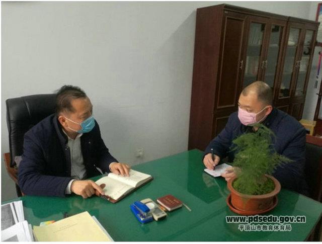 副校长曹亚东向林亚南汇报了防控物资筹备、隔离观察室设置、校园文化建设等方面的工作。目前防控物资的数量和隔离观察室的设施基本能满足高三年级、九年级学生开课的需要,校园文化建设正在稳步推进。