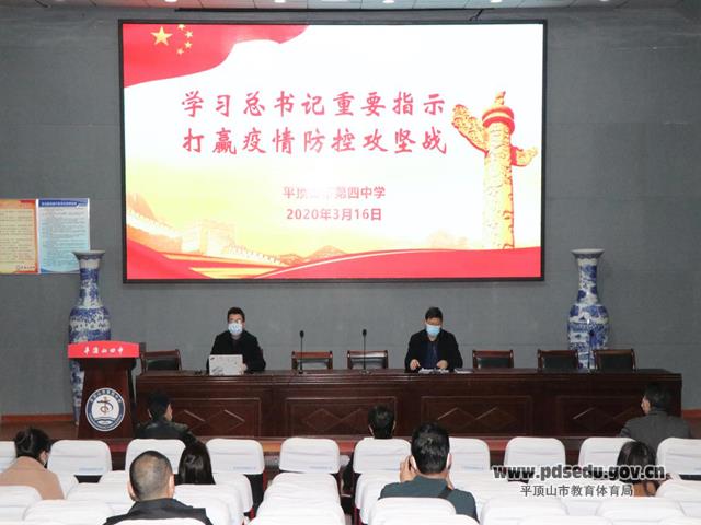 为进一步贯彻落实市教体局有关疫情防控与开学前准备工作的指示精神,3月15日上午,市四中第一时间召开班子会迅速传达会议精神,并就工作进行了详细部署,为新学期复学谋划新篇。
