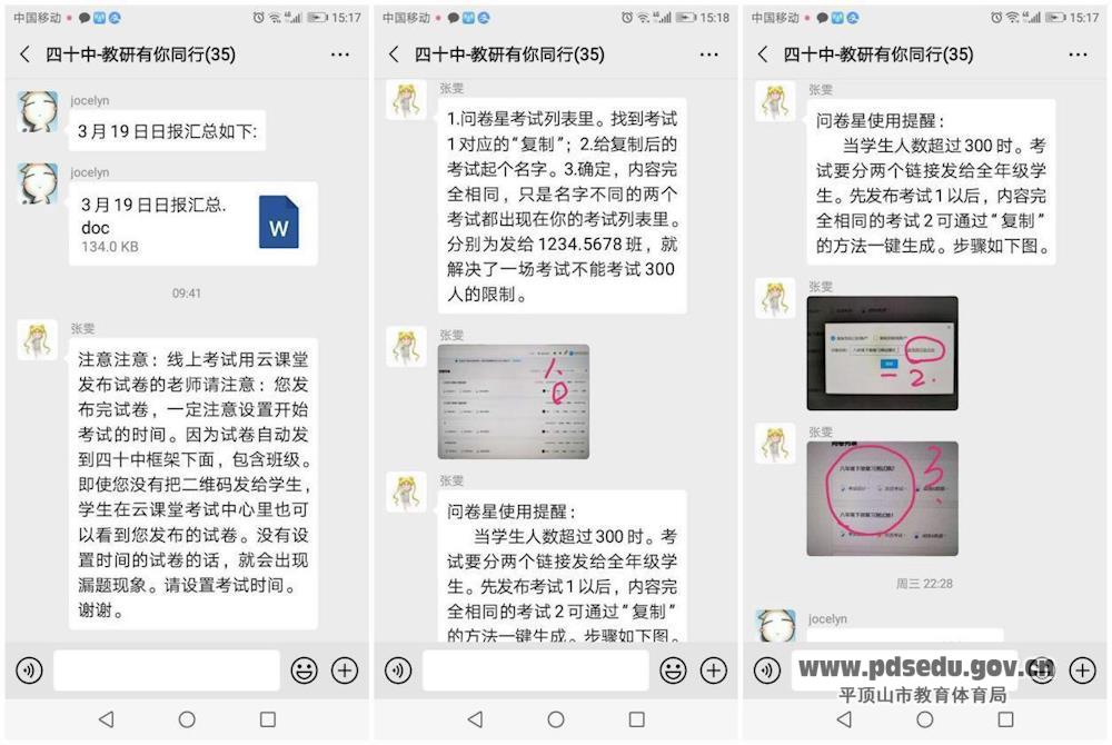 考试前,市四十中校领导、各教研组长、备课组长、班主任等通过在线视频会议的方式讨论考试如何进行,专门组织学校的计算机教师对全校教师进行线上考试试卷编辑培训,考试前全体教师以学生身份进入考试系统,反复测试查找漏洞,不断修改完善,确保了第一次线上月考工作万无一失。