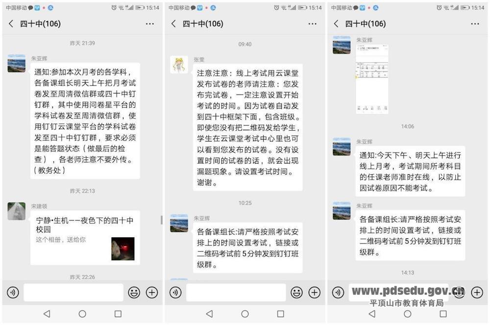 市四十中家长及学生对此次考试十分重视,家长密切配合班主任的各项工作,学生高度自律认真考试。班主任通过钉钉软件等线上的方式监督本班的考试情况,保证考试的真实有效。