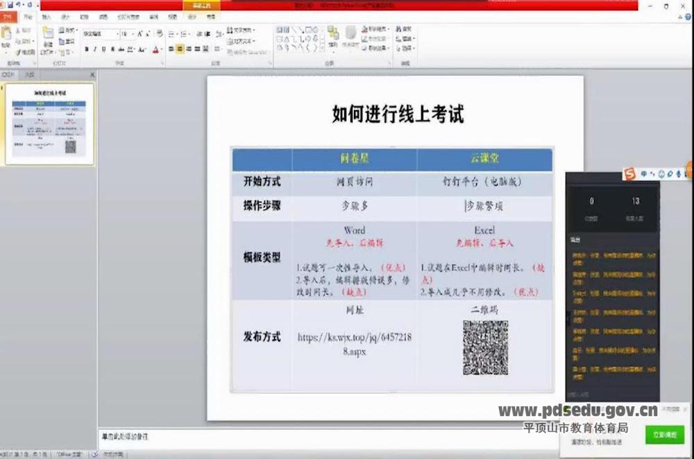 市四十中教导处朱亚辉主任提前规划,科学安排,制订了月考方案。张雯主任提前对各位教师进行“问卷星”和“云课堂”培训。月考工作布置以后 教师们积极行动起来,参加线上研讨、各抒己见,合力研讨组卷方式。