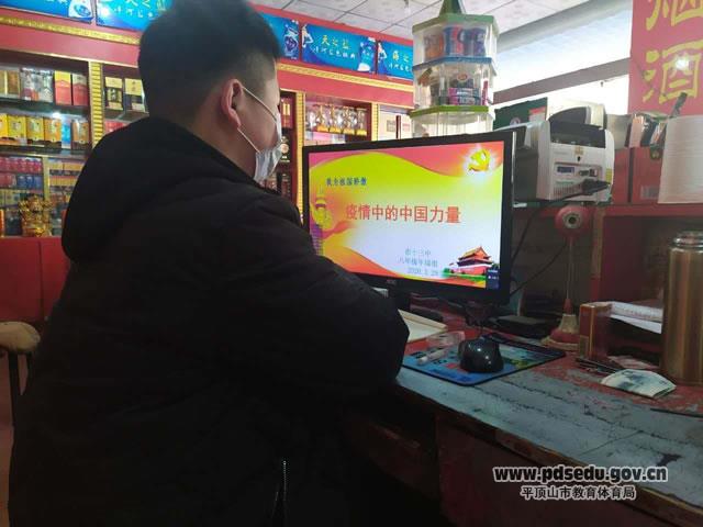 在《坚信爱会赢》温馨振奋的歌声中,市十三中王力老师带领八年级全体师生一同走进直播课堂,激动而又深沉地向同学们描述着一幅幅激动人心、催人泪下的感动画面,让师生们再一次感受到了疫情中中国力量的强大和无所畏惧!