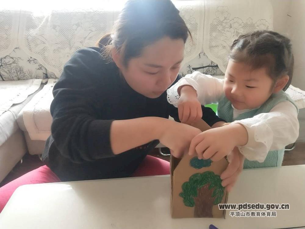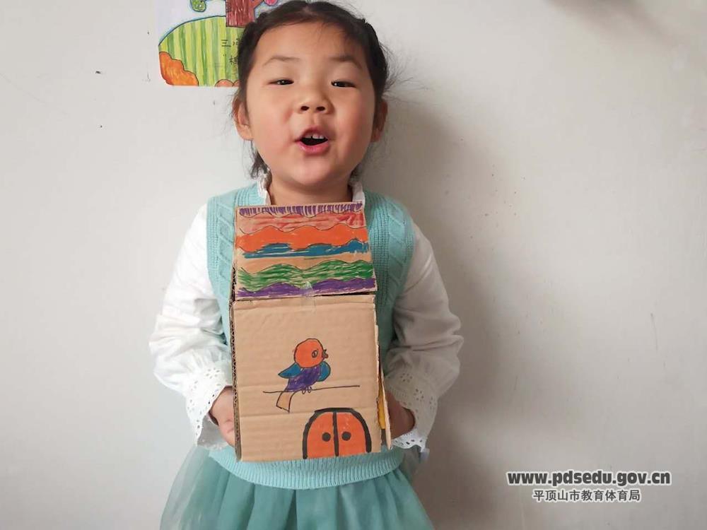 活动中,平东幼儿园的老师们通过公众号和钉钉平台,将制作好的课件、视频,发送给家长,根据幼儿的兴趣和年龄特点,设计了三个阶段的探索活动,分别是:小班亲子绘画《鸟宝宝的家》,中班纸箱手工制作《屋檐下的小屋》和大班树枝搭建《鸟巢》。以情景对话的互动模式开展活动,通过家园共育,激发幼儿乐于探索的兴趣,孩子们通过看一看、学一学、做一做,了解鸟的种类、外形特征、生活习性,知道鸟的珍贵,萌发爱鸟护鸟的意识。