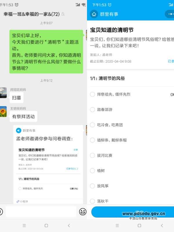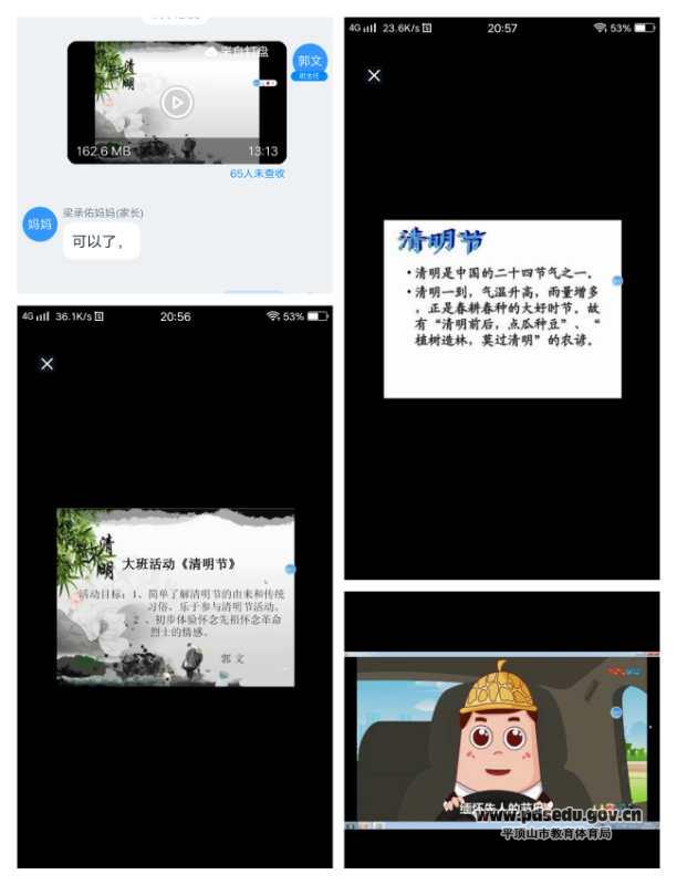 在疫情防控这个特殊的时期,家长和孩子们能一起参与活动,感觉很有意义。家长们纷纷表示:从中深刻理解了清明节的来历和节日含义, 我们要沿着革命先烈走过的足迹,树立榜样,树立正确的人生观、价值观。清明节有它深刻的文化内涵,我们不仅要热爱它,过好它,还要让孩子们更好地传承它。
