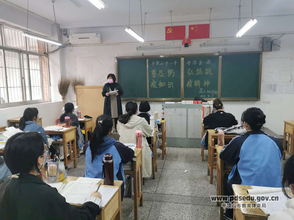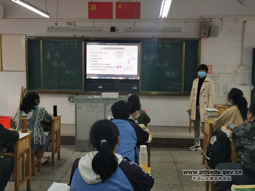 4月7日下午,市二中组织返校的高三年级学生召开了“普及防疫知识 弘扬抗疫精神”主题班会。