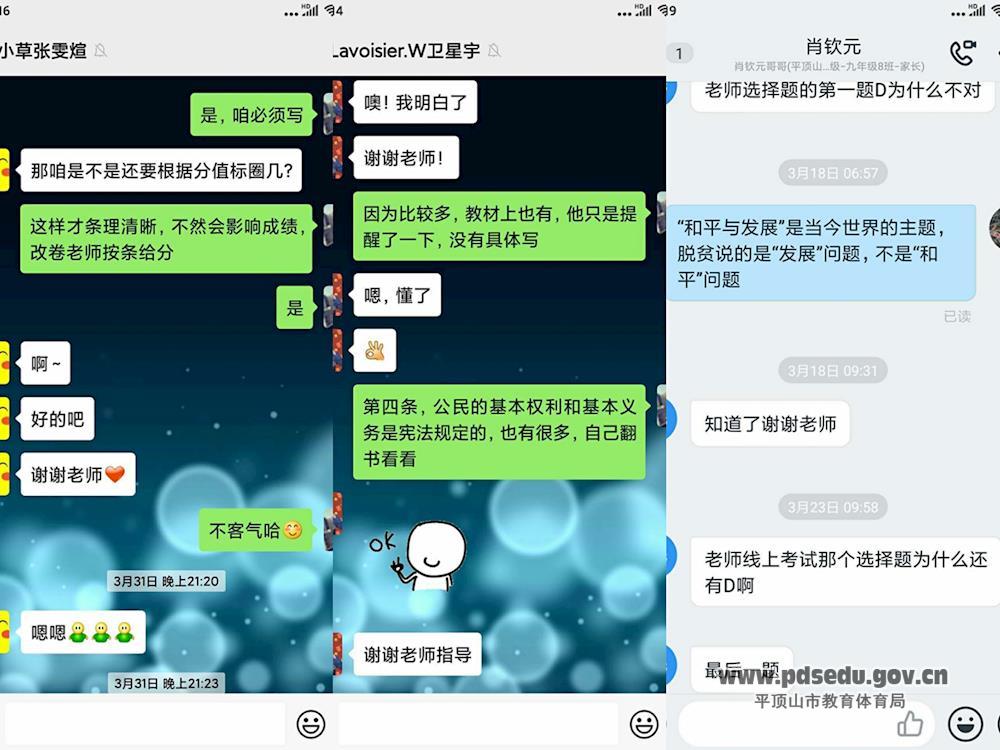 半亩方塘长流水,呕心沥血育新苗。自从接到‘停课不停学’任务后,各学科组教师全力以赴,实现“教学过程要持续,教学质量不打折”。唯一不同的,只是上课的地点和方式变了,那一颗颗培育新苗的初心不变。敏而好学,不耻下问。在老师们的细心指导下,同学们个个虚心向学,有难必问,有错必改。虚心认真听取老师的指导意见,及时发现自己的薄弱点,之后进行改正,不断让自己有更大的进步。