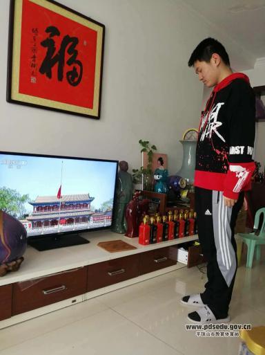 默哀中,孩子们在家中带着对英雄们崇高的敬意和深深的思念,直立低头,表情严肃,闭眼哀悼,用实际的行动怀念牺牲的烈士和逝世的同胞,拳拳爱国、报国的情怀油然而生。