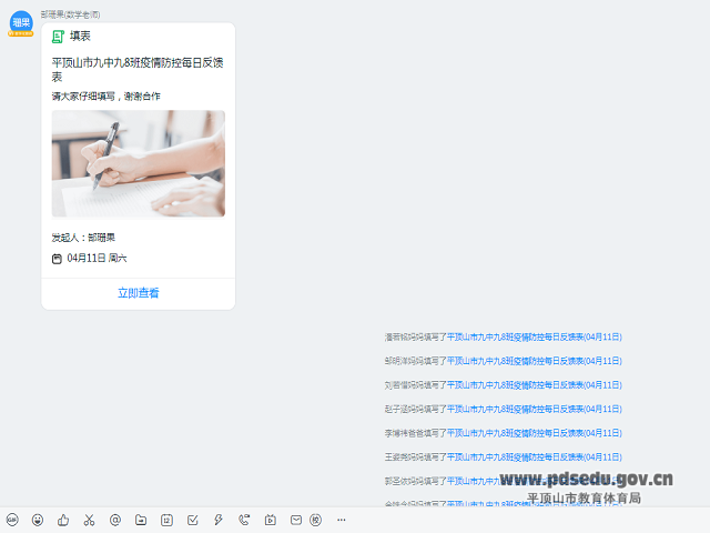 同时,班主任也通过“钉钉”网络平台对学生的健康状况进行每日统计,对未及时统计的同学,继续追踪,对于健康问题,绝不忽视任何一个学生。