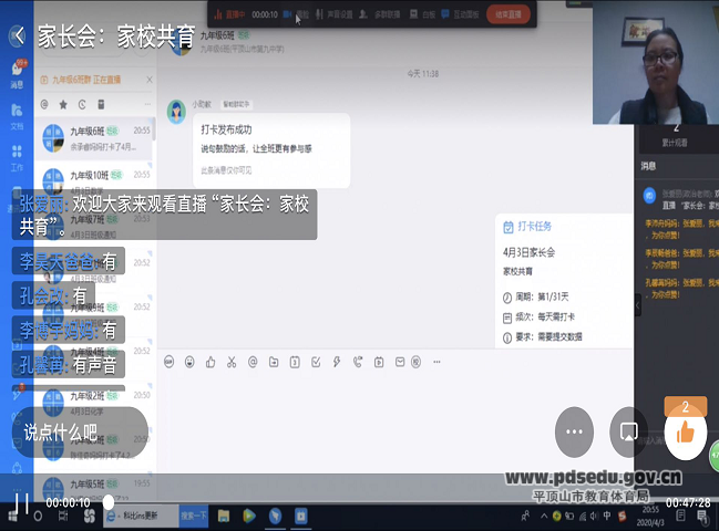 自疫情暴发以来,市九中始终秉持“停课不停教、德育不停课”的理念,九年级在校领导的指导下,以疫情为教材,以灾难为课堂,各班积极开展线上家长会——把灾难当教材,把困难当磨砺,我与祖国共成长。帮助学生构建正确的世界观、人生观和价值观,做到灾难面前与国家共患难、共进步,共同完成这场生命教育,爱国教育!