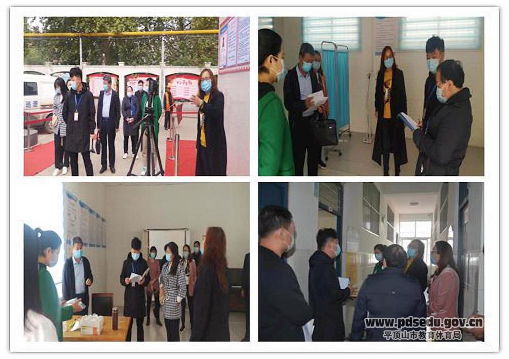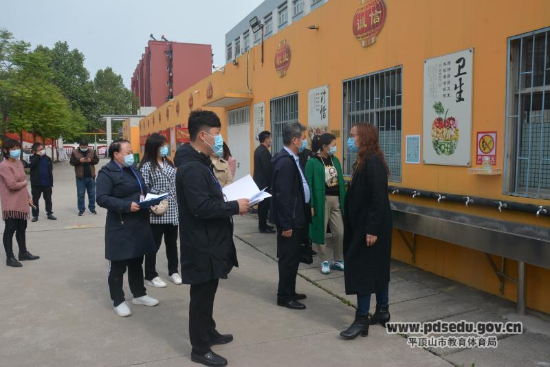 4月21日下午,平顶山市卫东区卫健委副主任白彩霞、卫东区教体局副局长杨广坡一行莅临市四十中检查指导复学防疫工作。