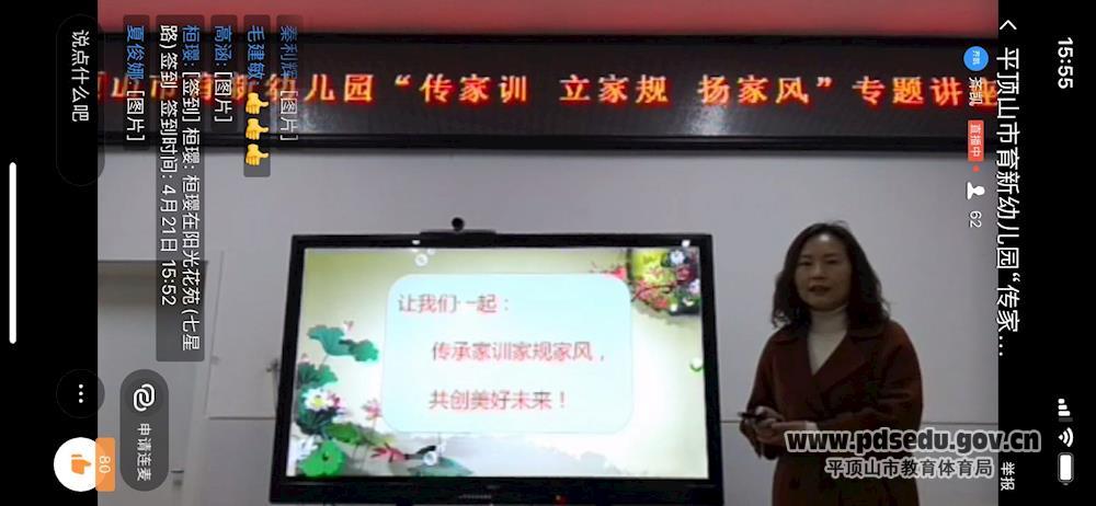 注重家风建设,好家风就是一种正能量,为了让家有个好家风,家家培育文明人,4月21日下午,市育新幼儿园开展以“传家训、立家规、扬家风”为主题的线上主题教育活动。