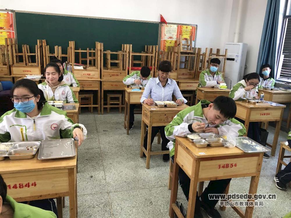 九(2)B班的一名男同学表示:“饭菜分发到手后,既热乎又好吃,又方便又安全。”就餐完毕,学生整理好个人餐具后,可选择休息或者自习,等待下午上课。