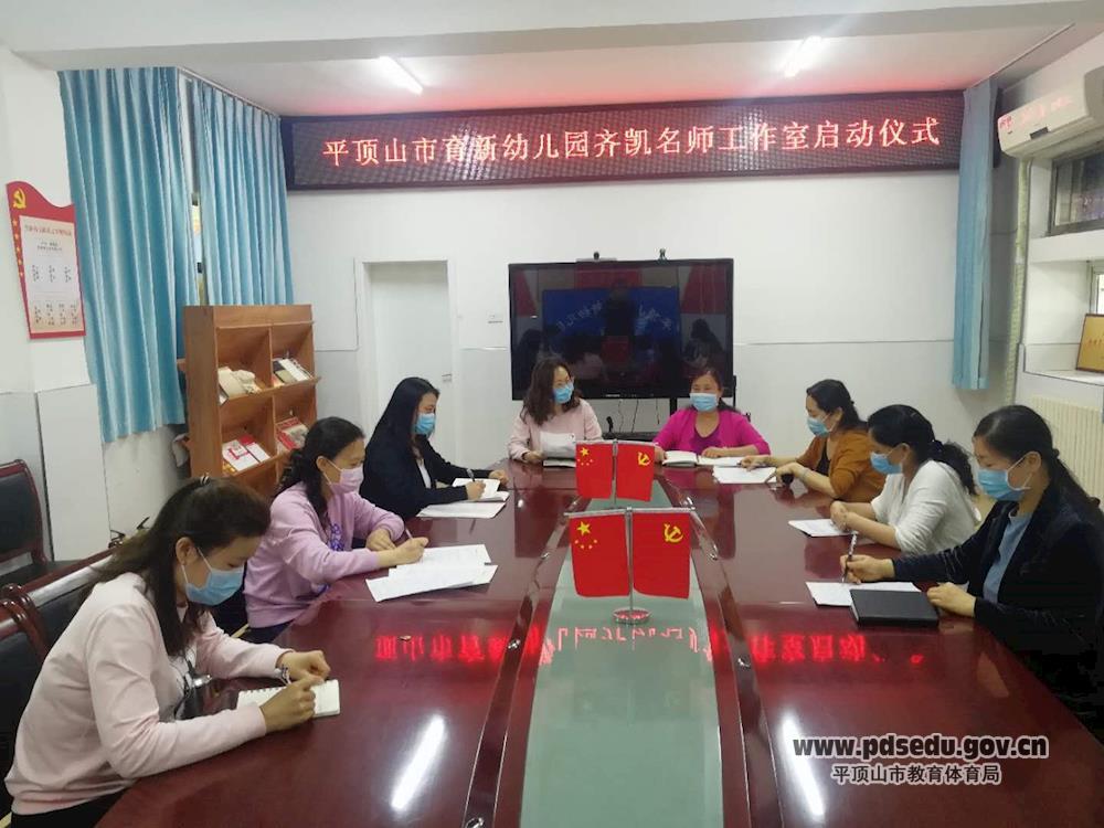 为更好发挥省级名师的专业引领作用,促进青年教师专业成长,为幼儿园培养新一批优秀的教育人才,在疫情防控的特殊时期,市育新幼儿园采用“现场+线上”互动模式,启动了市育新幼儿园齐凯名师工作室。