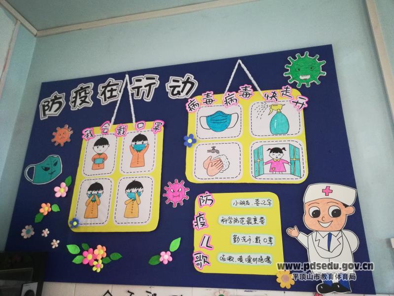 为迎接孩子们新学期的回归,充分发挥幼儿园环境“隐性课程”的作用,创设温馨舒适、充满童趣的生活环境,各班教师根据“把疫情当教材 与祖国共成长”主题教育活动的要求,群策群力、提前构思,布置好幼儿活动区域及活动标识,创设了班级“防疫”主题墙,为顺利迎接孩子们的到来做好环境准备。