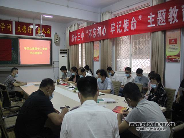 根据《中共平顶山市教育体育局党组关于 2020 年度理论学习中心组分专题集体学习的安排意见》文件精神,市十三中制定中心组学习计划。按照学习计划于5月21日,全体中心组成员学习《习近平新时代中国特色社会主义思想》第三十讲——坚持用习近平新时代中国特色社会主义思想武装全党。