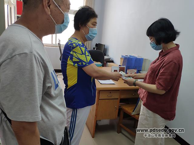 “这位老师,我好像不认识?”当退休老党员,昔日的教务主任王学堂老师说出这句话时,大家忍不住笑起来。是啊,由于口罩的遮挡,确实不容易认出彼此。但口罩遮住的只是人们的面庞,老党员的赤子之心依然火热。