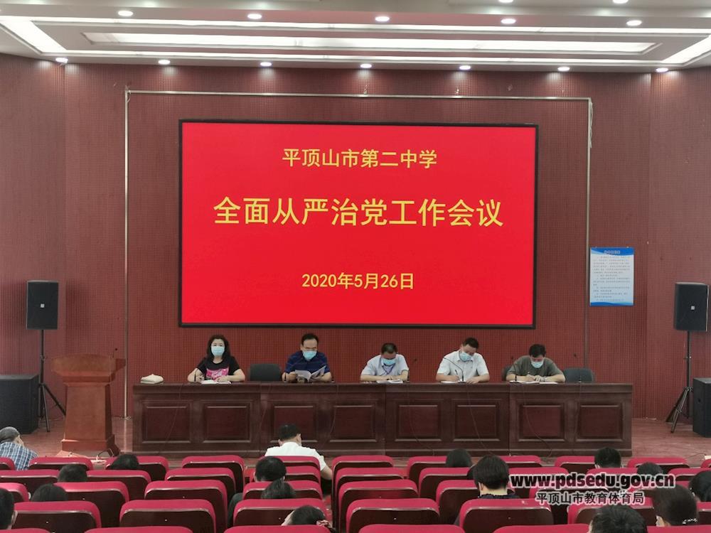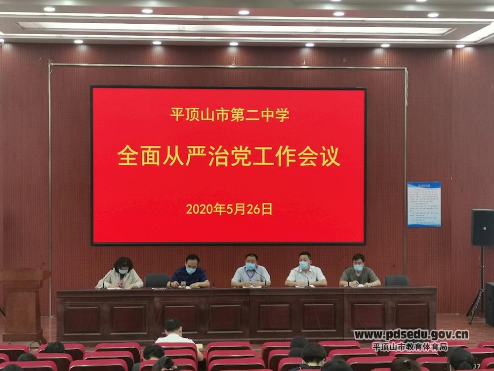 5月26日下午,市二中党委在阶梯教室召开全面从严治党工作会议,中层干部、全体党员参加,会议由校党委委员、副校长李欣主持。