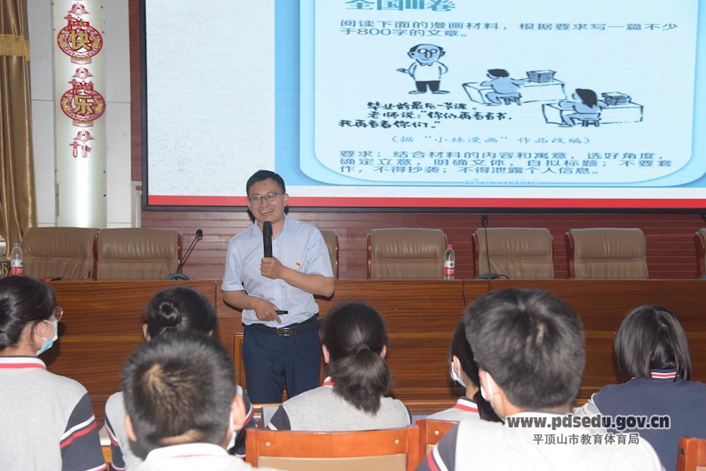 匠心筑梦,助力高考。6月4日下午,市二高特邀国家课程教材研究所、中国教育科学研究院研究员——北师大博士后苏玉杰老师做“2020年高考语文之预见”讲座。校语文组全体教师和高三部分学生与会学习,副校长罗果主持本次讲座。