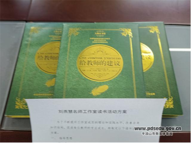 首先,名师工作室主持人刘燕慧向参会成员宣讲读书活动方案。其中包括终身学习教育理念指导思想,并指定苏霍姆林斯基的教育专注《给教师的建议》为近期交流心得的书籍,最终的活动方式以自主阅读、读写结合、研读分享为主。
