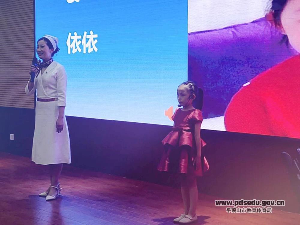 此次活动,平东幼儿园高度重视,从内容的选取、赛前的准备、形式的编排等方面,精心创作,认真编排。参赛过程中,7名党员教师和一名小朋友以饱满的热情、别样的方式,为大家献上自创诗词作品《别样战疫守初心》。舞台上令人感动的情景表演、振奋人心的故事讲述,欢快优美的歌声,让台下的观众为之感动,掌声此起彼伏。