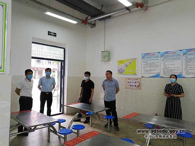 2020年6月15日上午,河南省人民政府食品安全委员会组织的检查组莅临市四十二中,对开学以来的食品安全工作进行检查。检查组由河南省卫健委食品处处长余薇,姫红星、祁兴来、张其武等人组成,由市卫健委调研员罗志军,市场监管局副调研员赵立权,卫生保健站王磊陪同。