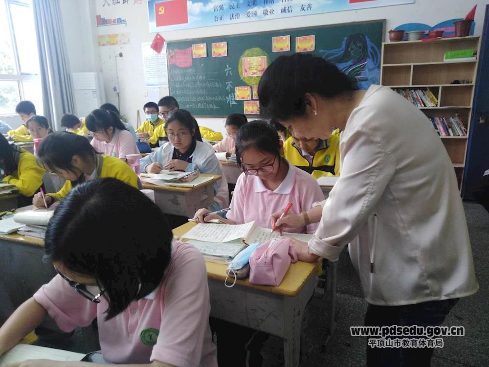 午自习期间,四十中的老师们一直陪在学生身边,他们放弃了休息的时间,放弃了陪伴家人的时光,耐心为学生辅导、答疑解惑,督促学生午休。八(6)班语文老师刘琛利用午自习时间耐心辅导学生掌握高分作文的写作技巧;七(8)班数学老师孙镯在午自习上给学生讲解几何重点难点。