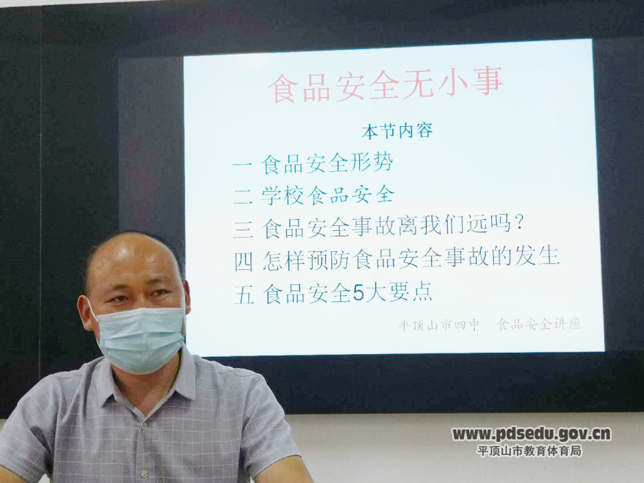6月18日上午,市四中在IDC教室组织开展了第三次食品安全培训活动。膳食处负责人、餐厅全体工作人员参加了此次活动,膳食处主任马建国担任主讲。