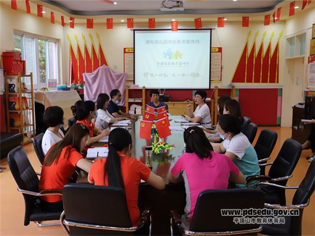 5月20日,幼儿园举行了2020年学前教育宣传月活动启动仪式,副园长宋云芳宣读了《教育部办公厅关于开展2020年全国学前教育宣传月活动的通知》和《湖光幼儿园2020年学前教育宣传月活动方案》,提出要紧密结合家长,发挥家园共育的力量,多方面、多角度开启线上线下的家园共育合力,从而实现真正的教育合力和亲情陪伴,并围绕宣传主题多种形式开展主题宣传活动。