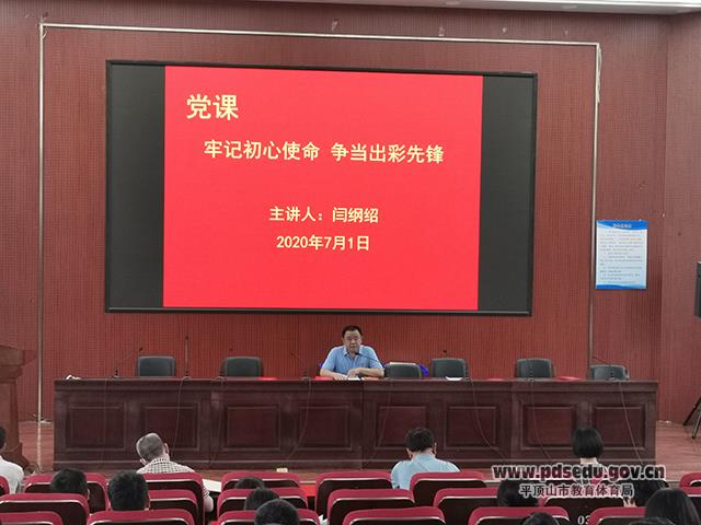 最后,党委书记、校长闫纲绍以“牢记初心使命、争当出彩先锋”为主题为广大党员上了一节党课,强调了对党的衷心和教育的初心,立足本职岗位,争做业务表率,做育人楷模。
