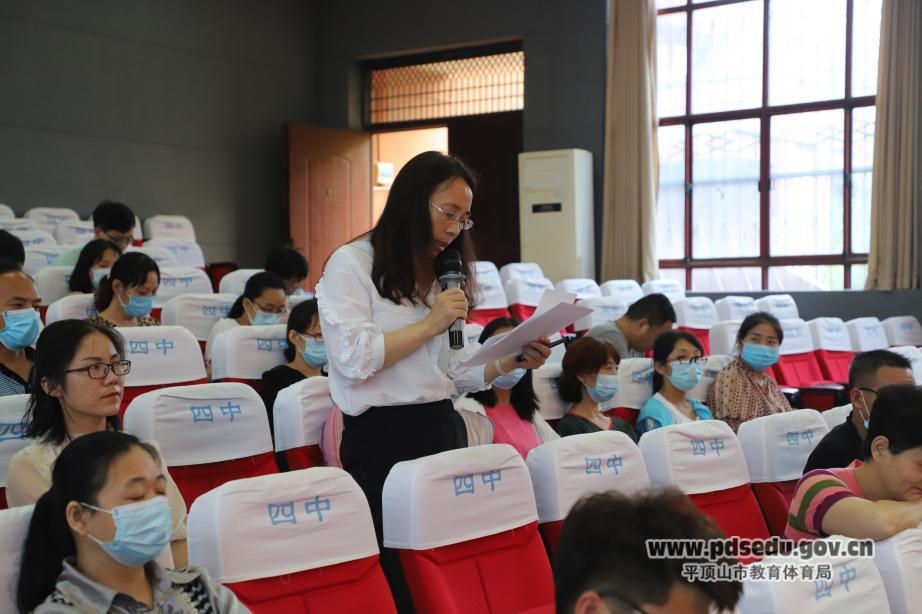 为庆祝建党99周年,巩固拓展主题教育成果,6月28日下午,市四中在讲座厅举行了“牢记初心使命 争当出彩先锋 ”主题党日活动,全体党员参加活动。活动由党支部书记、校长杨全军主持。