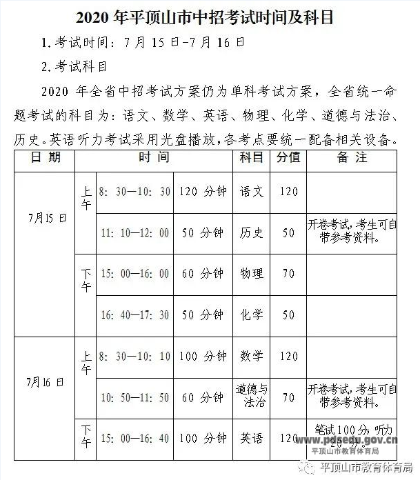 据了解,今年中招考试我市共设考区7个,全市考点40个,普通考场1944个,备用隔离考场86个。共有58181名初中毕业生参加中招考试。
