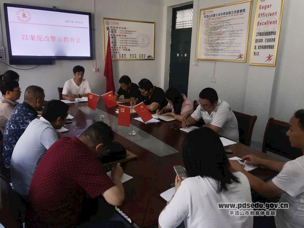 会上,大家集中观看了警示教育片《永远在路上》,又认真学习了《工资表里的秘密》,张建军传达了全市教育体育系统以案促改警示教育大会会议精神,带领大家学习了《平顶山市第十五中学以案促改工作实施方案》,根据文件精神作出进一步的要求。