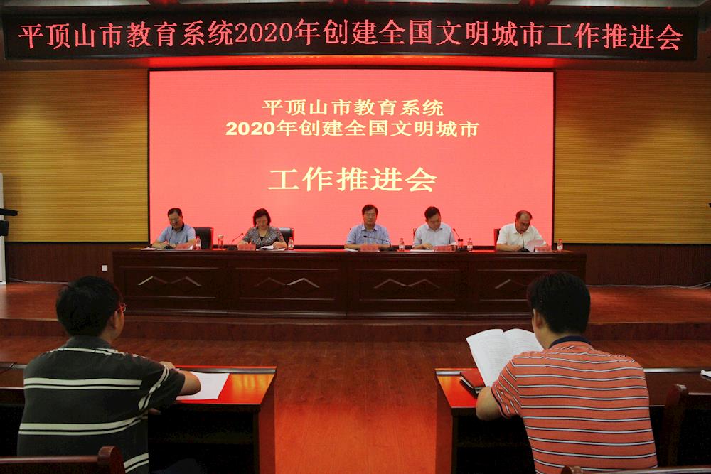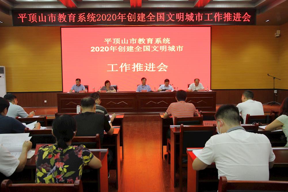 市教体局创建办刘书超宣读了《平顶山市教育系统2020年度全国文明城市测评氛围营造及公益广告设置工作方案》及《平顶山市教育系统2020年度全国文明城市测评氛围营造及公益广告设置任务分解一览表》,明确了创文工作的目标和任务。