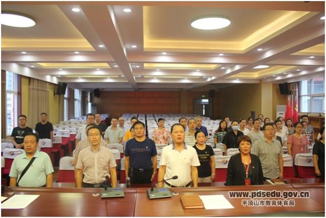 1.党支部书记、校长林亚南带领与会人员学习《中共平顶山市教育体育局党组关于组织开展以案促改专题学习讨论的通知》文件精神。