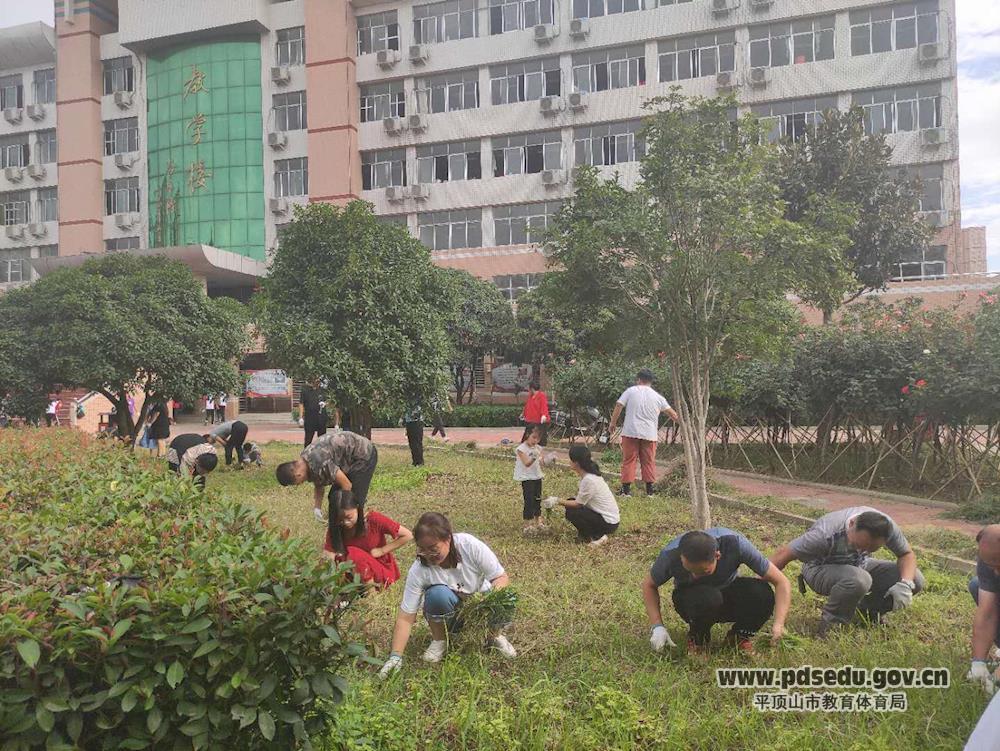 由于近期气温高,雨水充沛,学校绿化带里杂草生长迅速,大有压倒鲜花之气势。为进一步美化校园,为师生打造一个清洁美丽的学习、办公环境,8月24日下午,学校发出倡议,号召全体师生志愿者开展拔草活动。