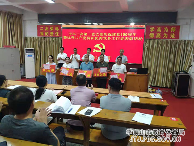 会议宣读了《中共宝丰县第二高级中学支部委员会关于表彰优秀共产党员、优秀党务工作者的决定》,对魏建有等15名优秀共产党员、优秀党务工作者杨帅锋予以表彰,并颁发荣誉证书和奖金。